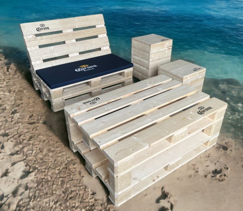 Suchen Sie sich aus unseren zehn Top-Biermarken das passende Zubehör aus – vom Sonnenschirm, über Palettenmöbel bis hin zu Bierkrügen, Tabletts und Tshirt.